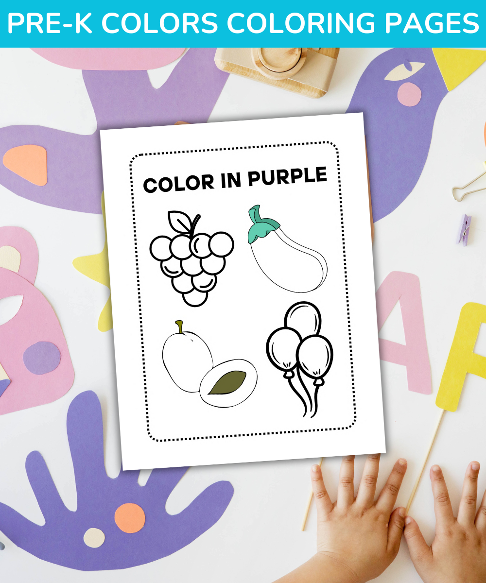 A set of 10 colors coloring pages. Each page consists of the instruction “Color in (name of the color)” and 3 to 4 images to color. Ideal for Preschool and Kindergarten.