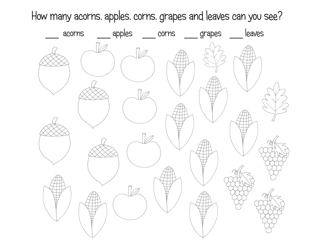 - finish the drawing pages: acorn, apple, corn, leaf, pie, turkey