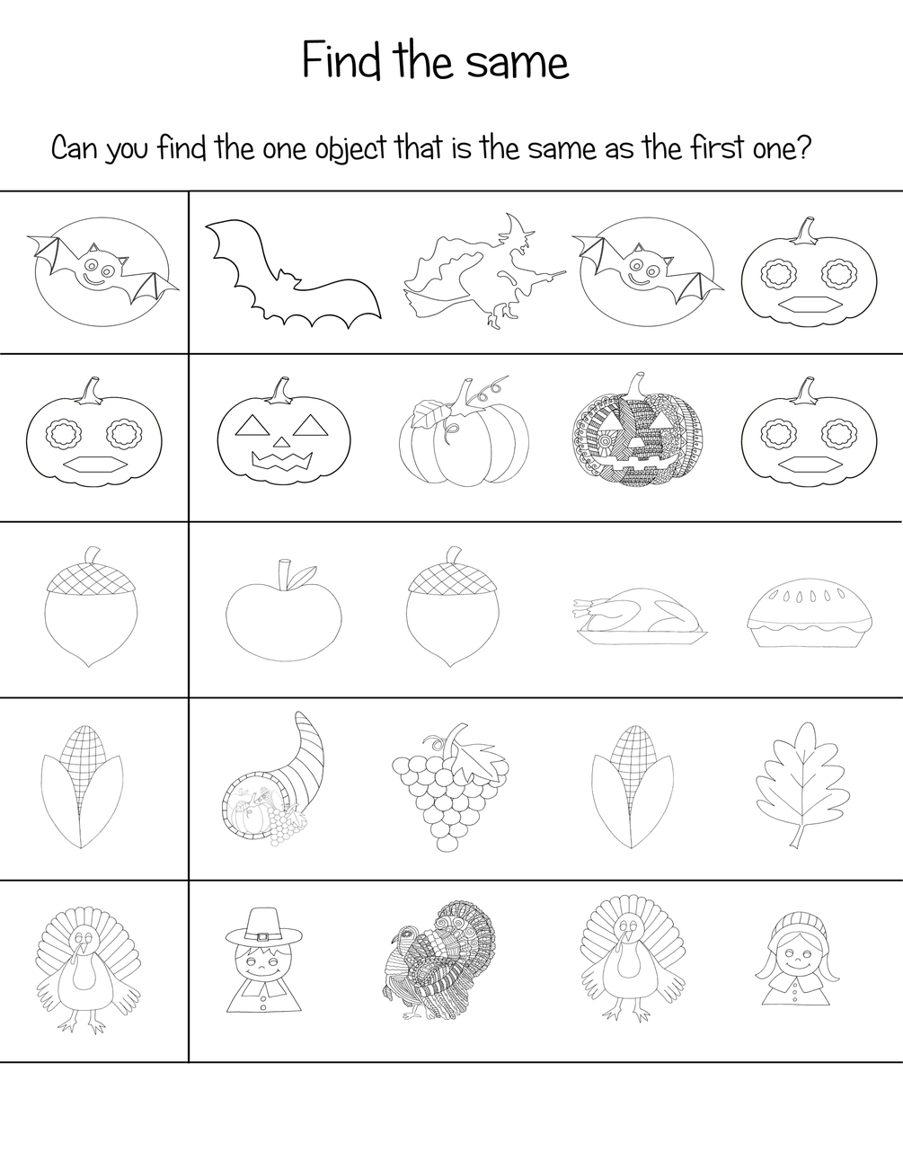 - odd one out pages: turkey, pumpkin